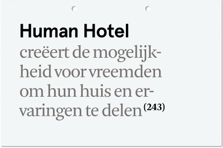Unfortunately some subscription forms for the Human Hotel were misplaced during the course of the exhibition meaning those who filled out the forms have not had a response, but the Human Hotel is still available in Eindhoven!
