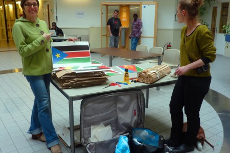 On Tuesday the 18th of February, the team formed by Laurie Jo Reynolds, Giles Clarke, Eleni Gogou and Garazi Ansa went again to the Vluchthaven to continue the workshop and to design the rest of the flags. For that day, it was planned a trip to Utrecht, to support the demonstration organized by refugees that are living in there.