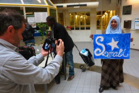 They spent the whole day in the Vluchthaven discussing, interviewing and photographing the occupants of the old prison. During the day, the team led a workshop, where the refugees made new signs and flags of their own countries to hold in the streets in the future demonstrations.