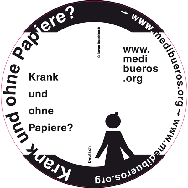 To offer information on medical care to those without health insurance, residence permits and papers in 50 different languages, referring them to the Medibüros offices. Medibüros are non-governmental contact points, established with the aim of giving anonymous and free medical assistance to illegals. In addition, the project also seeks to raise awareness of the issue with those who walk past the sign.