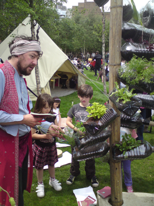 The Apothecary Arboretum was designed and built by the artist gardener Dimitri Launder with a group of students of Camberwell College of Arts in London. The aim was to create a garden both medicinal and edible, in a concrete neighbourhood. His latest project was to create a living eco-system of vertical, functional, agricultural, apothecary sculpture: prototype 1.0.