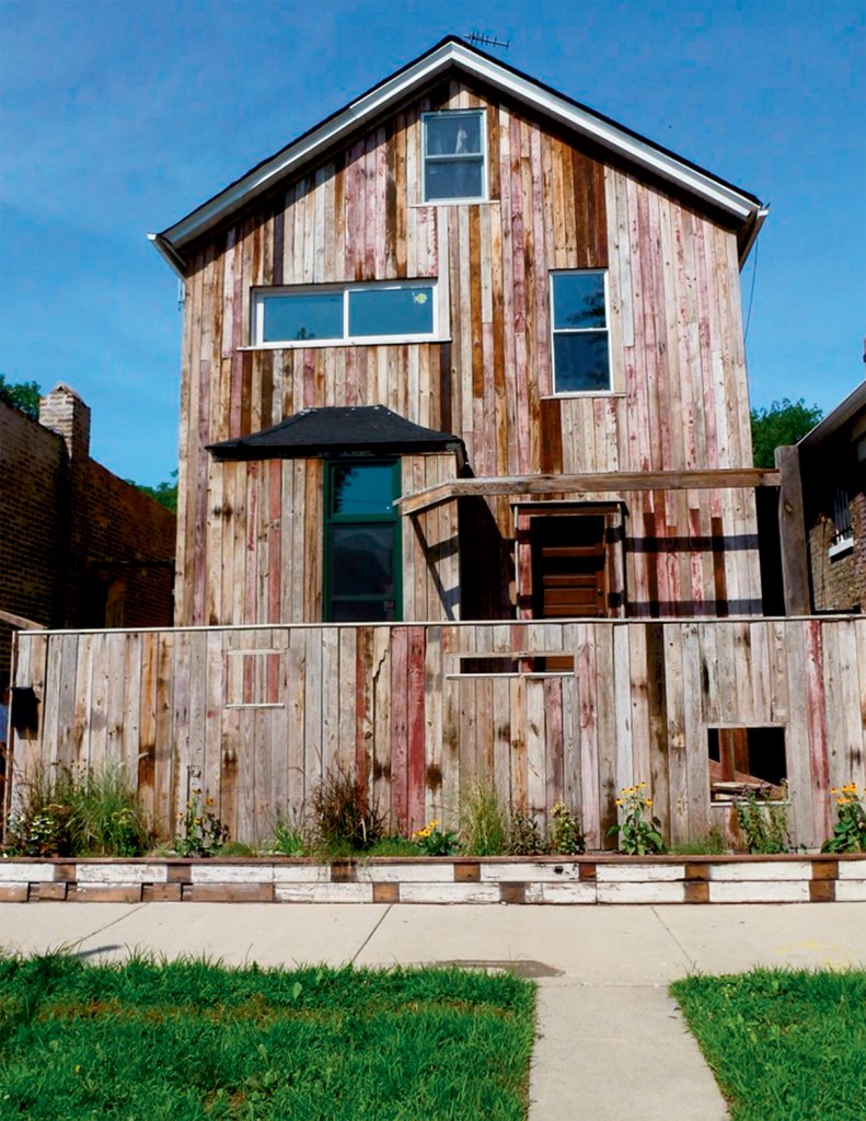 “Using repurposed materials from all over Chicago, the aesthetic of Gates’ Dorchester Projects is both practical and poetic, bridging the creation of new art with the adaptive reuse of resources. Within this multi-functional and growing space, community-driven initiatives and experiences foster neighborhood revitalization and serve as a model for greater cultural and socioeconomic renewal. Dorchester provides its neighbors and local youth the opportunity to perceive built and living environments as spaces worth constructing, exploring and critiquing. It empowers community members to engage in the movement of radical hospitality by physically transforming their surroundings and filling them with beautiful objects, diverse people and innovative ideas.†(Theaster Gates)