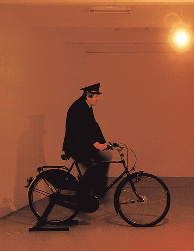 Inside the Wienner Secession gallery, a system of bicycles generated energy. Two of its attendants pedaling on bicycles propped on trestles, generated the energy to turn on the bulbs in several of the rooms of the gallery.