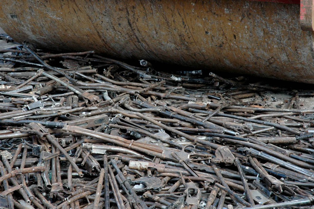 Palas por Pistolas involved the citizens in the public destruction of weapons using a steamroller in a military base. Subsequently the metal was reused to create shovels, which serve to plant trees. On the handle of each shovel blade there is a description that shows how the weapon has now become a peaceful instrument. The project was supported by a local TV station, which invited citizens to give up a weapon, and also, a local chain store which gave a coupon to be used for shopping by anyone who gave up a