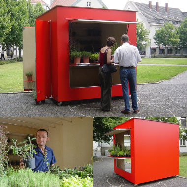 The Street Shop Box was designed and built as a transformable object, which can change from a Public_Sculpture on non-working days, into a Market Stand on working days.
