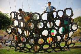 Local waste is transformed in useful installations or objects.