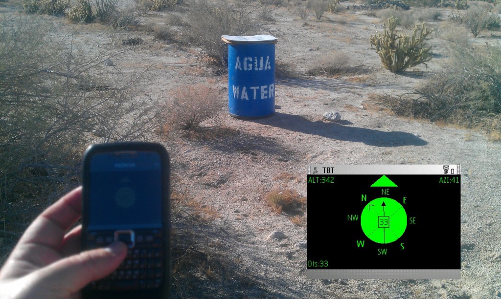 Researchers, new media artists, and co-founders of the Electronic Disturbance Theater/b.a.n.g. lab, Ricardo Dominguez and Brett Stalbaum, together with a wider team of poets and professors, devised the Transborder Immigrant Tool (TBT) to improve the odds of a safe crossing of the Mexico–U.S. border. Thousands of people have died in their journey, mostly due to its vertiginous and deserted geography. “It is better to live to cross the desert tomorrow than to have the desert cross you today.†The TBT consists of a GPS system (in this case, standing for Geo Poetic System) with 24 hours of experimental poetry